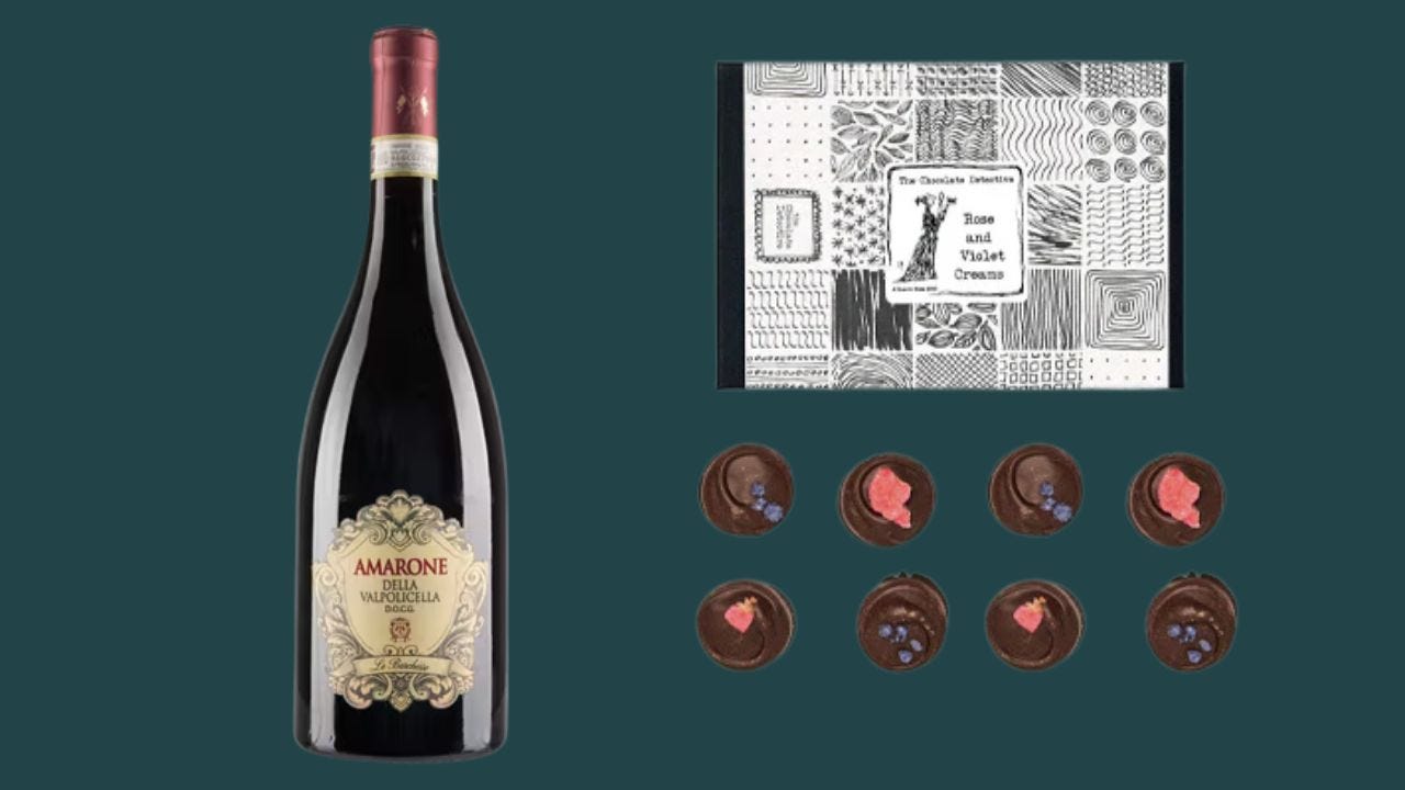 With its floral perfume and silky sweetness and dark cocoa bite, both rose and violet creams pair remarkably well with the rich elegance of Amarone della Valpolicella.